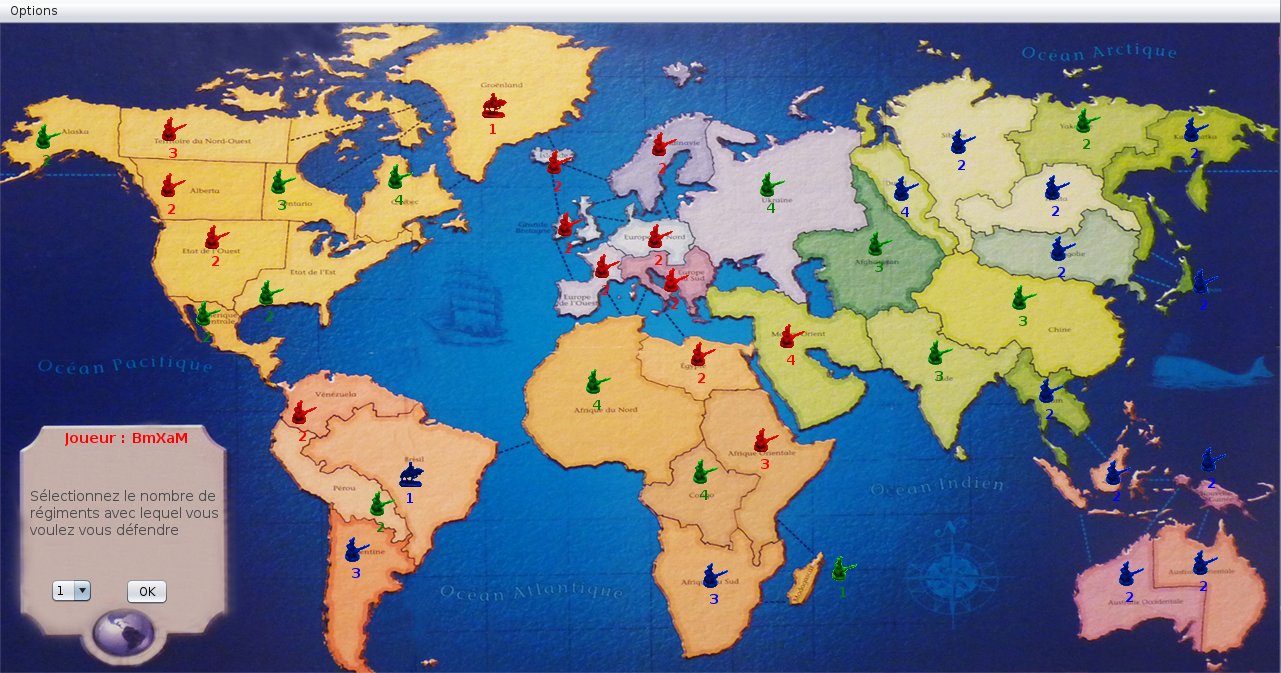 Réalisé dans le cadre d’un projet Java en école d’ingénieurs, Risk reproduit le célèbre jeu de plateau. Le jeu est disponible ici.